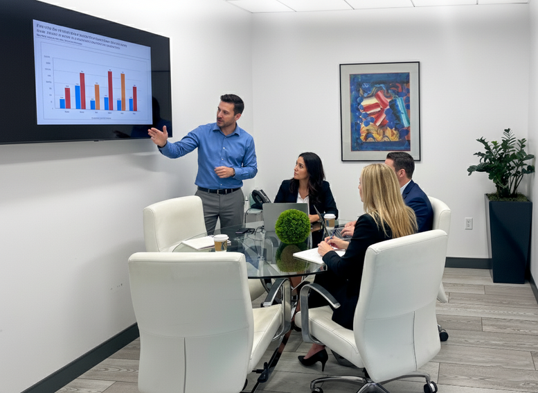 Tenants here have the option to choose between furnished or unfurnished offices and can also access conference facilities at other nearby centers. The workspace is equipped with numerous helpful amenities, such as high-speed internet, mail and package handling, printing services, a break room, and complimentary beverages.