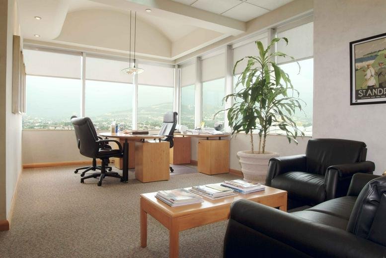 This office centre in Monterrey provides a managed workspace solution in the Avalanz Tower, located in the Valle Oriente district of San Pedro Garza García. The building sits within the city's main financial hub and features a design locally recognised for its commercial significance. Inside, the workspace uses a neutral palette and industrial materials to create a functional environment.