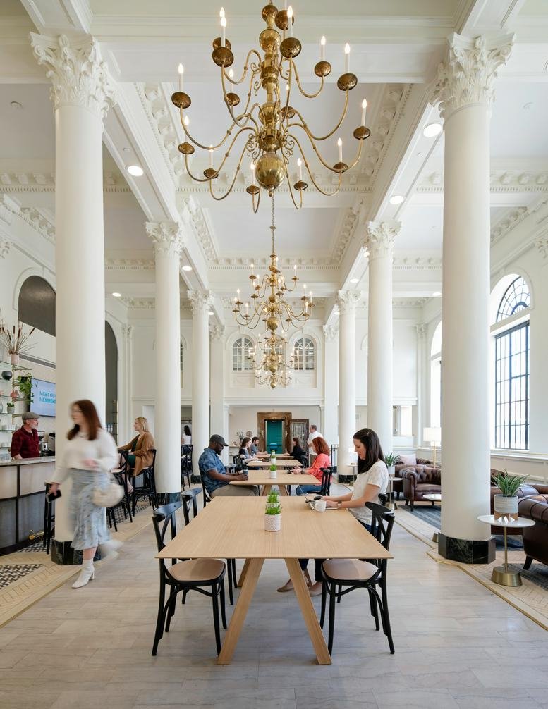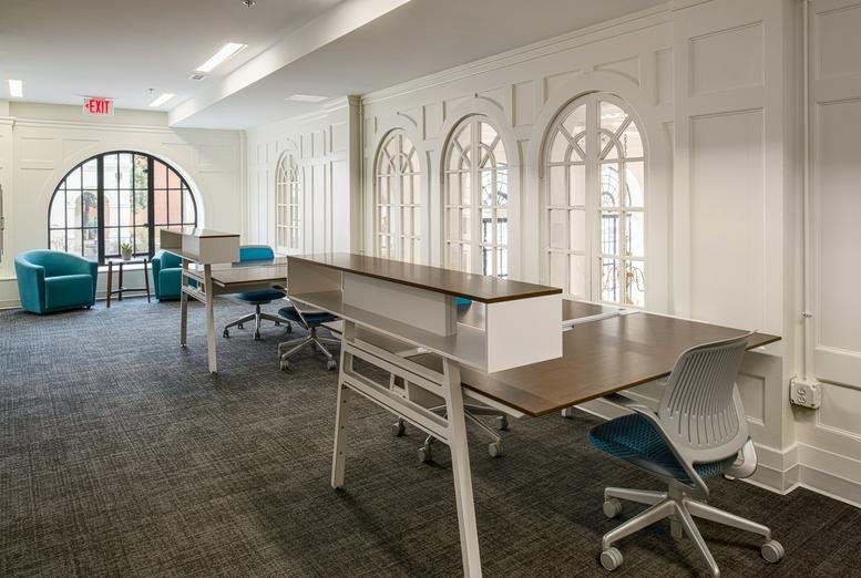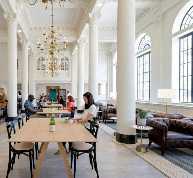 This contemporary office hub features a cafe-style ground floor, a coworking-focused lower level, and a mezzanine level. It has expansive floor-to-ceiling windows that flood the coworking offices and team suites with natural light. Furthermore, the workspace provides essential amenities such as Wi-Fi, coffee/beer service, printing facilities, and meeting rooms, enhancing its flexibility and adaptability.