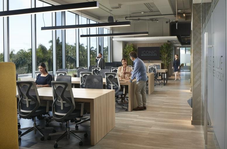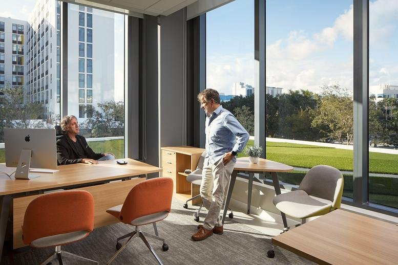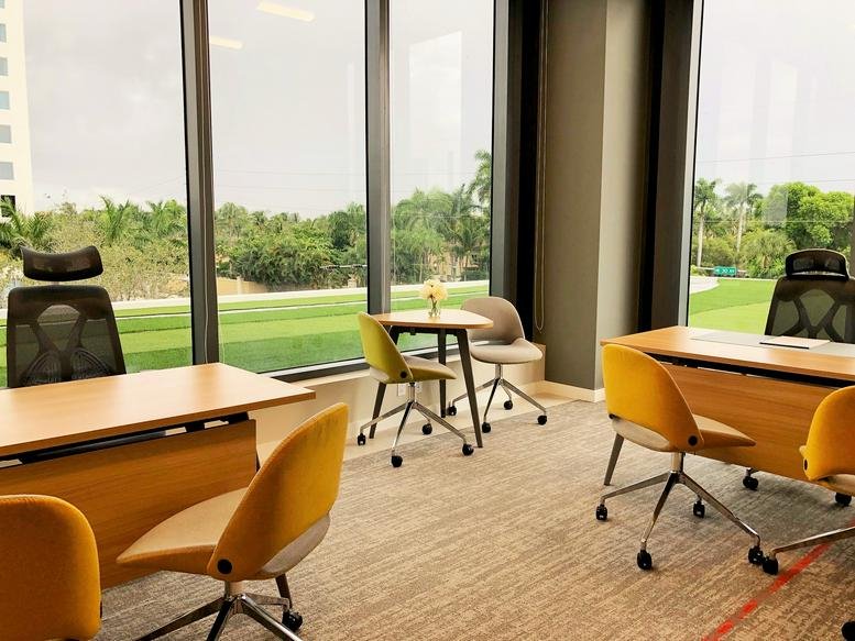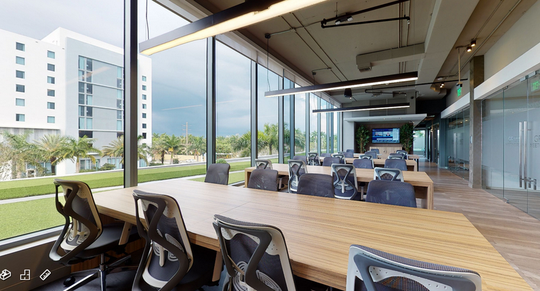 Situated in Aventura, this office space boasts a range of amenities to facilitate a first-class work environment. It is fully furnished, offers flexible contracts, mail handling services, and includes convenient business amenities such as high-speed Wi-Fi, on-site conference rooms, and regular cleaning services to ensure operational efficiency. The office space is accessible by public transport and features well-lit workspaces, inviting breakout areas, and ample facilities for team meetings or casual gatherings.