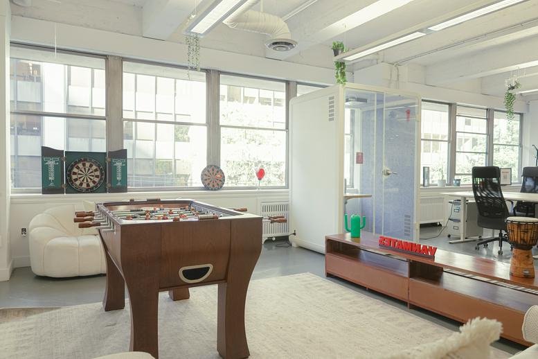 Regular networking events foster professional connections, while a rooftop terrace with city views is suitable for both work and downtime. A fully equipped kitchen provides complimentary refreshments, supported by modern meeting rooms and comfortable private phone booths, balancing productivity with comfort.