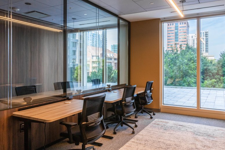 Spanning the third and fourth floors of a prominent tower, this workspace provides a range of private offices and suites tailored for teams of 15 or more. The building features a renovated lobby and common areas designed for a professional yet inviting atmosphere. Floor-to-ceiling windows frame impressive city views, while an on-site café area keeps teams fueled with snacks and hot drinks throughout the day.