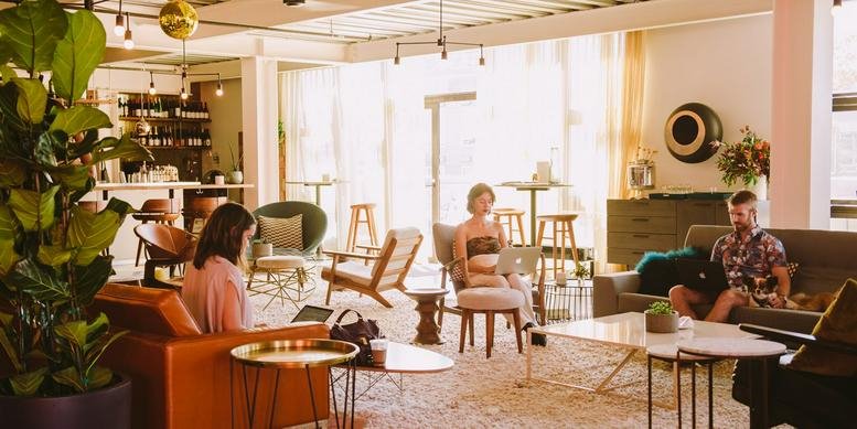 Welcome to our upscale business center, designed for the comfort and efficiency of every tenant. Our facilities feature a modern-bohemian lounge with soft lighting, a full bar, comfortable seating, and a striking white grand piano. Our rooftop deck points westward, offering stunning afternoon and sunset views. The lounge also features convenient amenities such as a TV, a whiteboard, and rustic furniture to create a warm, productive environment.