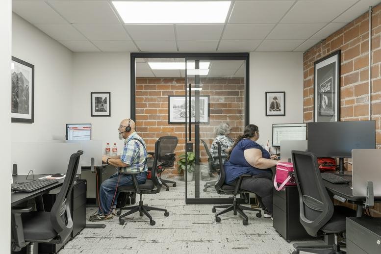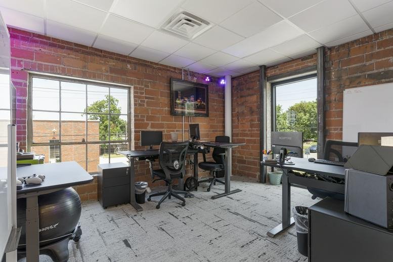 This office space, originating from a 1940 warehouse and extensively renovated in 2023, offers a range of flexible workspaces, from communal areas to private executive suites. Adorned with local artists' work and featuring a contemporary color scheme of emerald and navy, it creates a warm, inviting atmosphere. A professional management team is on hand to cater to each company's unique needs, enhancing productivity.