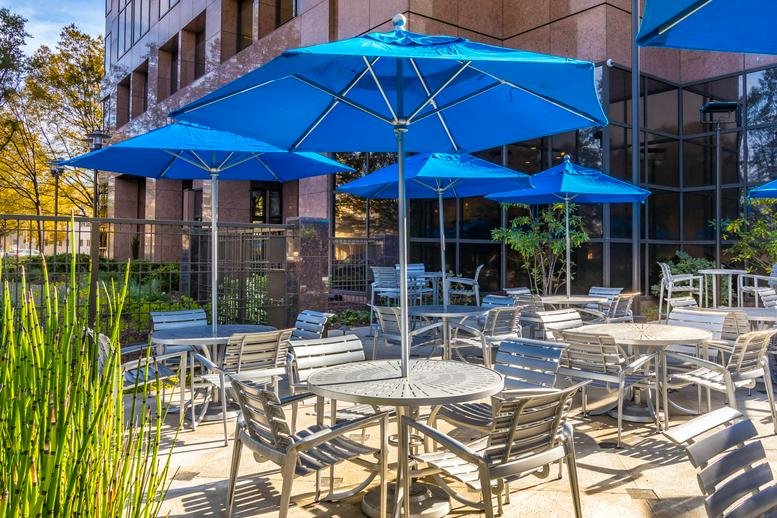 The center features 85 private offices, a coworking floor, and five conference rooms for groups of up to fifty-eight people. On-site amenities include training areas with presentation technology, shower facilities, and a fitness center, while purpose-built suites are available for team development sessions and training events.