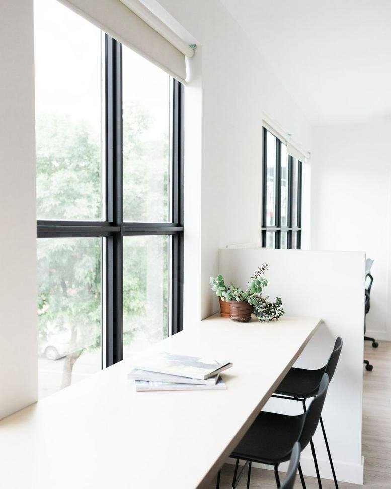 The environment features a clean, minimalist design with ample natural light and high-speed Wi-Fi. A complimentary coffee service and kitchen access are included, with 24-hour entry available to support flexible schedules. Please note that access involves a flight of stairs.