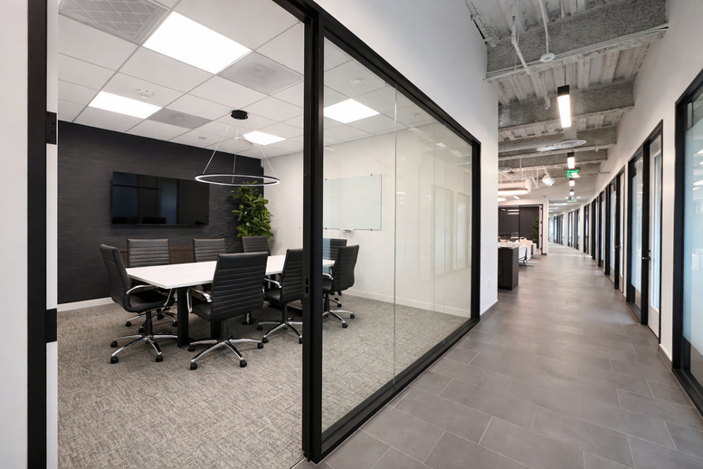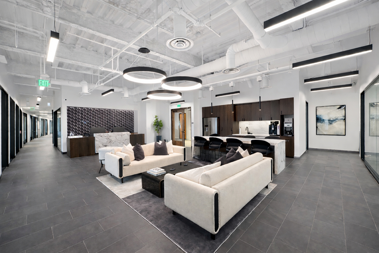 This 17,000-square-foot second-floor office suite provides views of the surrounding area and is designed to meet the operational demands of a growing company. The space is BREEAM/LEED certified, reflecting a focus on environmental performance that aligns with corporate sustainability goals. In the building lobby, seating areas are available alongside EV charging stations, while an on-site gym provides a place for physical activity during the workday. Staff showers are also available, accommodating those who cycle to work or prefer to freshen up after exercise.