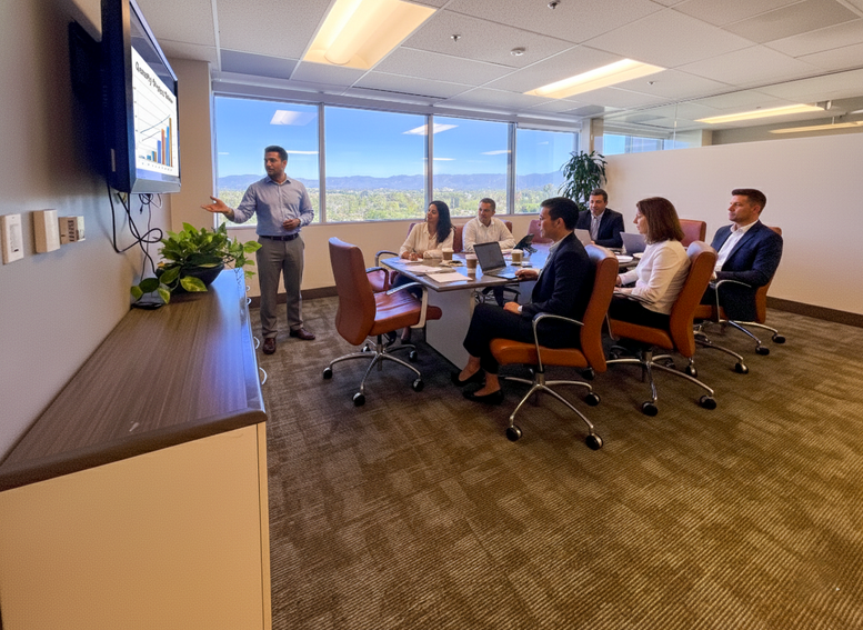 A choice or both furnished and unfurnished office spaces are available at this terrific business center - all with breathtaking mountain views. A full support team is available if required plus all of the very latest state of art technology and facilities. Easily accessible from the 101 and 405 Freeways.