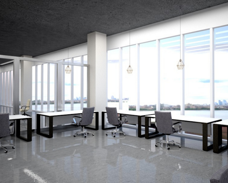Occupying the upper floors of a six-story building, these offices feature floor-to-ceiling windows and glass walls that allow natural light to fill the workspace. The layout includes 16-foot ceilings, contributing to an open and airy environment well-suited for growing teams. Select spaces include access to private rooftop terraces, offering a refreshing outdoor amenity for breaks or informal meetings. With unobstructed, panoramic views of the Manhattan skyline, the setting provides an inspiring backdrop that brings energy to the workday while allowing businesses to focus in a modern, well-equipped environment.