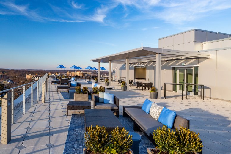 This serviced office center is situated in the Rosslyn-Ballston corridor, a hub for federal agencies and technology companies in Northern Virginia. The building features a rooftop terrace with ample seating in both sunny and shaded areas, offering a pleasant spot for lunch breaks or informal meetings. Memberships include daily breakfast and access to exclusive events, allowing businesses to focus on their operations while enjoying professional amenities. Courthouse Plaza is directly across the street for dining and cinema options, while on-site parking and secure bicycle storage are provided for convenient commuting.