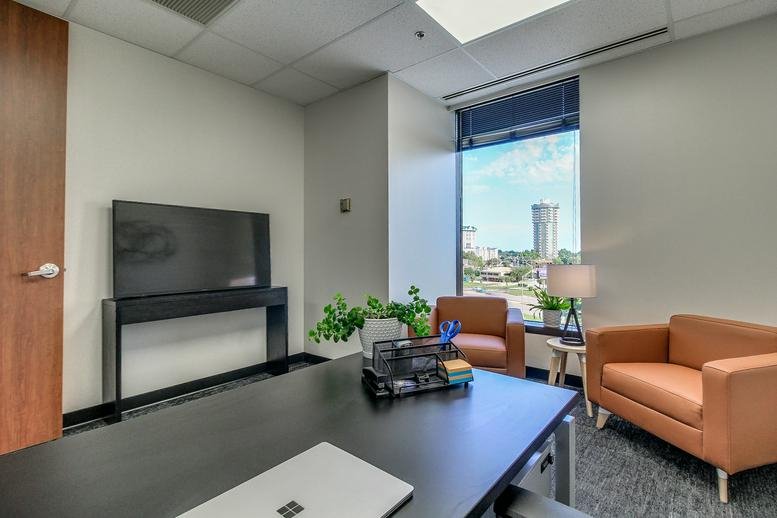 Situated in Union Plaza on Northwest Expressway in Oklahoma City, this office center offers immediate access to the junction of Interstate 44 and Lake Hefner Parkway, with further links to Interstates 235, 40, and US-77. Will Rogers World Airport is a 14-minute drive via I-44.