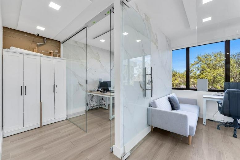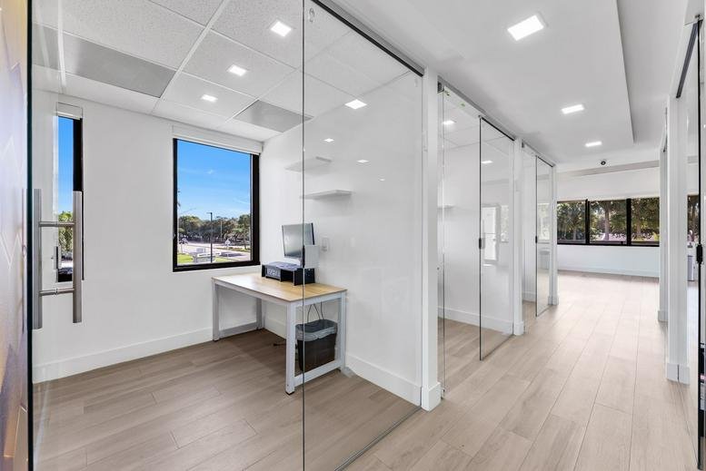 Set in the Emerald Hills area of Hollywood, Florida, this office occupies a prominent position along Sheridan Street for excellent visibility. The location offers a professional setting with easy access to major thoroughfares including I-95, I-595, and Florida’s Turnpike. The airport is a straightforward 15-minute drive away, while the Hollywood Tri-Rail Station and local bus stops are conveniently close by.
