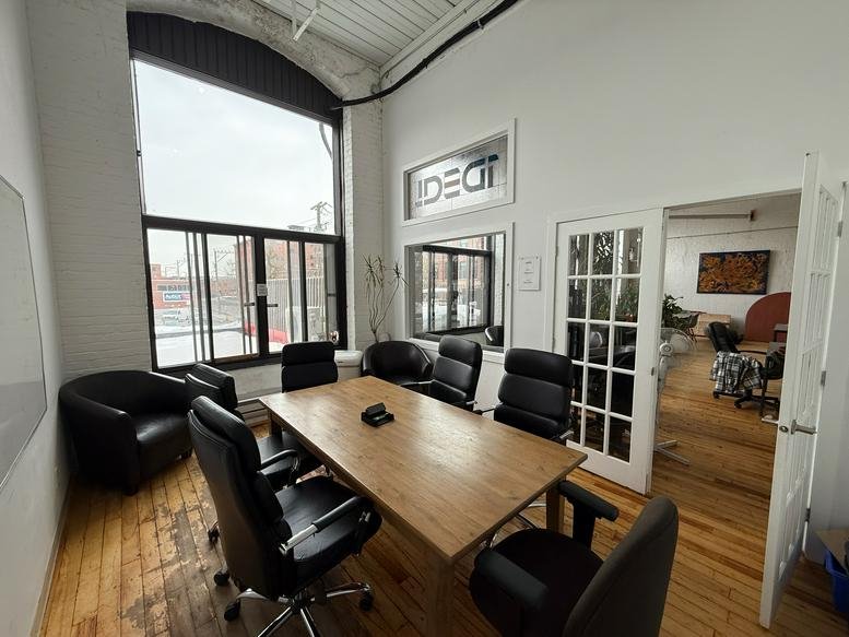This office is set in Montréal’s Saint-Henri neighbourhood, a district with an industrial heritage that has evolved into a hub for creative and technology firms. The location is well-connected, with Montréal-Trudeau International Airport roughly 20 minutes away via AutoRoute 20. Place-Saint-Henri Métro station is a short walk from the building, making commuting straightforward. The Lachine Canal is just steps away, providing a pleasant setting for lunch breaks, while local dining options like Cafe Cantinova and L'Ambroisie are within easy reach. Atwater Market is also close by, alongside landmarks such as the Merchants Textile Mill National Historic Site.