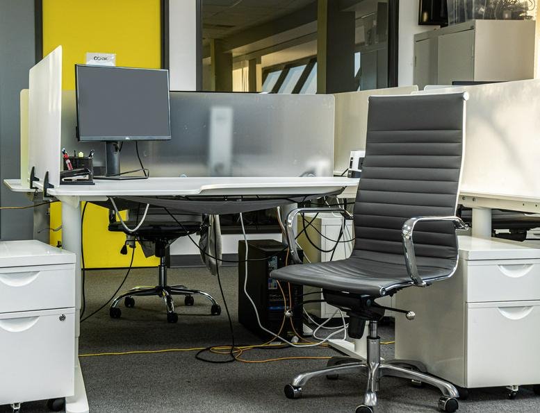 The workspace provides air conditioning and access to outdoor areas, with both reserved and covered parking available. Tenants have access to a dedicated breakout room featuring contemporary decor and a calm atmosphere, which is ideal for informal meetings or midday breaks. Further amenities include a comfortable lounge, video-conferencing equipment, and a mail-handling service.