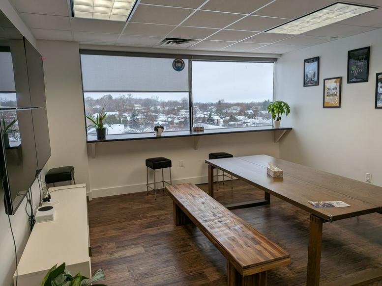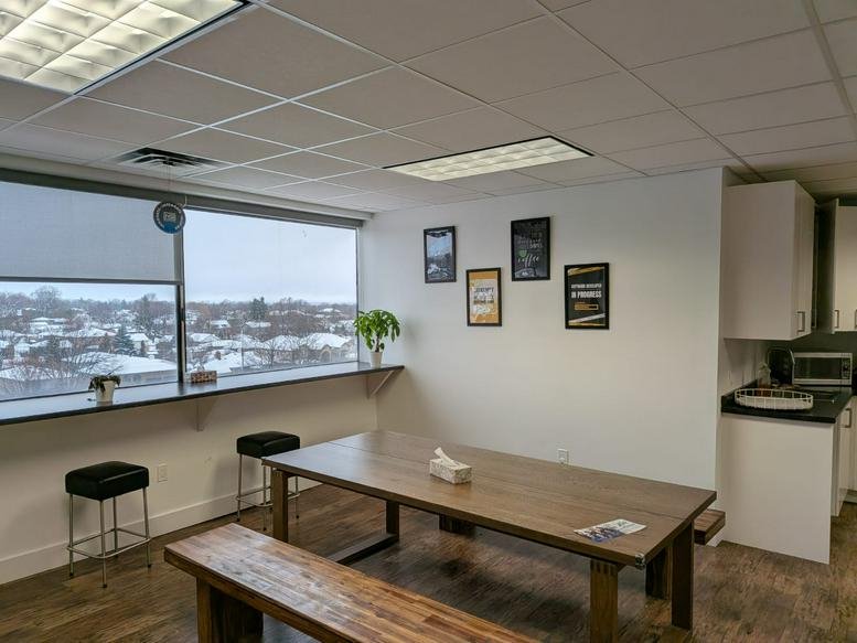 This serviced office centre is located at 1030 Upper James Street on Hamilton Mountain, a major commercial and residential plateau. It occupies a well-connected position within one of the city's main corridors, with easy public transit access and convenient connections to major roadways like the Lincoln M. Alexander Parkway for travel across the city. The surrounding area has a variety of retail plazas, banks, cafés, and restaurants, with a post office just steps from the entrance. John C. Munro Hamilton International Airport is about a 15-minute drive away via Upper James Street, while the Hamilton GO Centre is roughly a 15-minute journey by public transport.